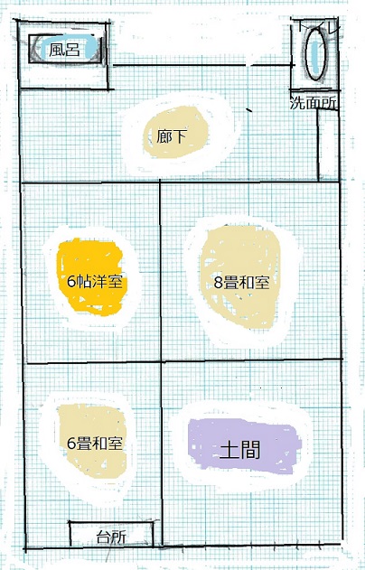 | 間取り | 3DK(土間8帖 和室6畳 和室8畳 洋室6帖 ) | ||