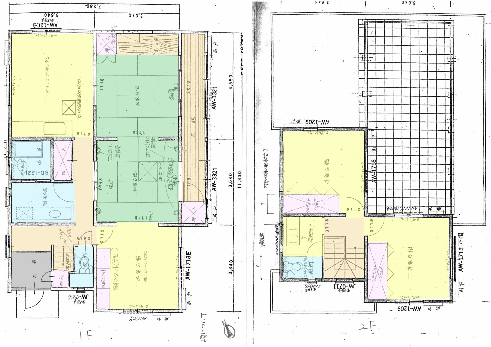 | 建物面積 | 1階 91.81m²(27.77坪)2階 36.43m²(11.02坪)物置23.18m²(7.坪) | ||